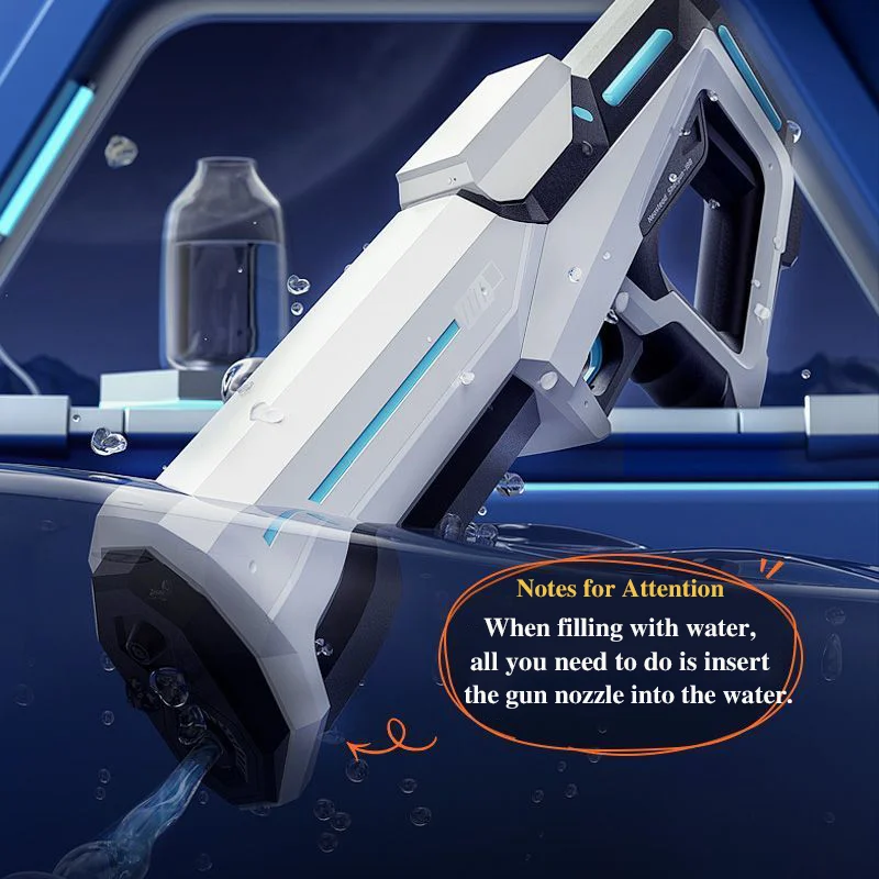 - **Auto-Refill Water System –** Simply dip the nozzle into water to automatically refill—no pumping, no hassle—keep the action going effortlessly.
